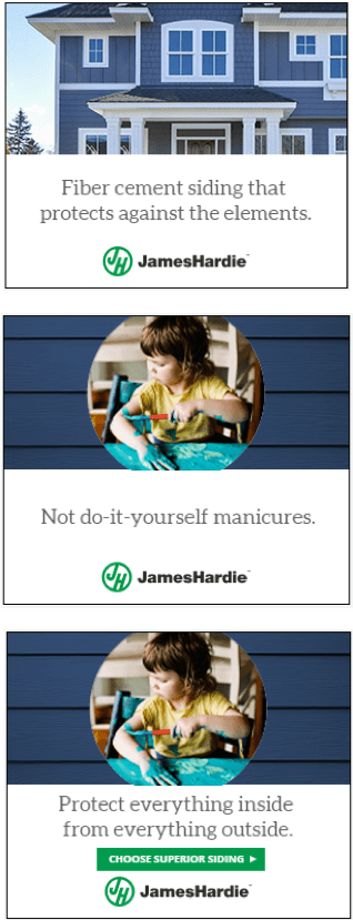 So, what did we do? Creatively, we developed a strategic and creative platform that focused on protecting what matters most. James Hardie fiber cement siding is ultra-tough, instilling confidence that one’s home, and what matters on the inside, will be protected.