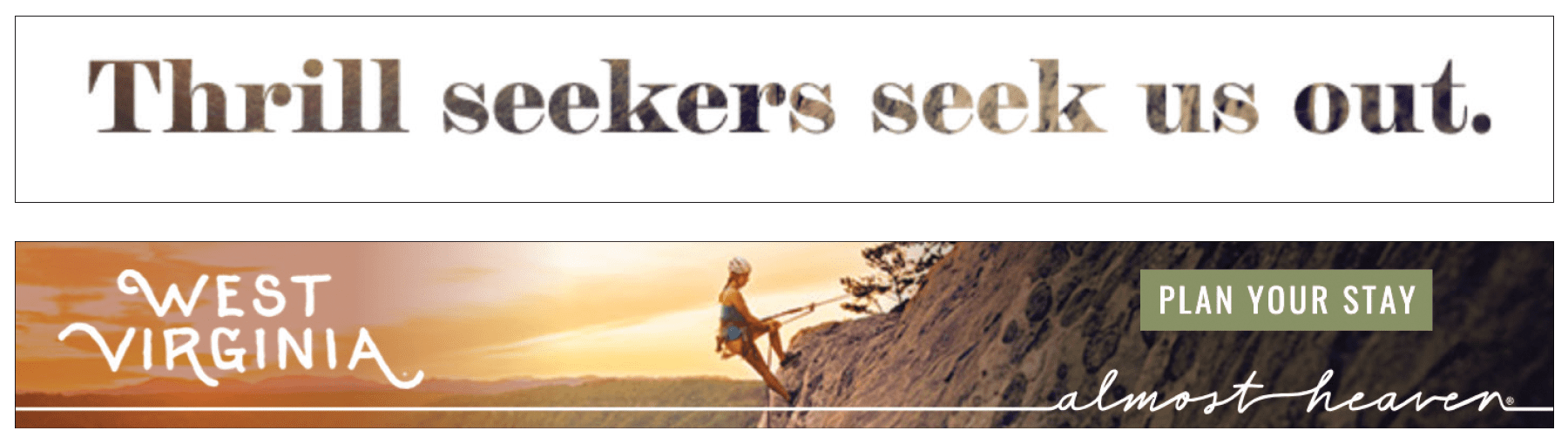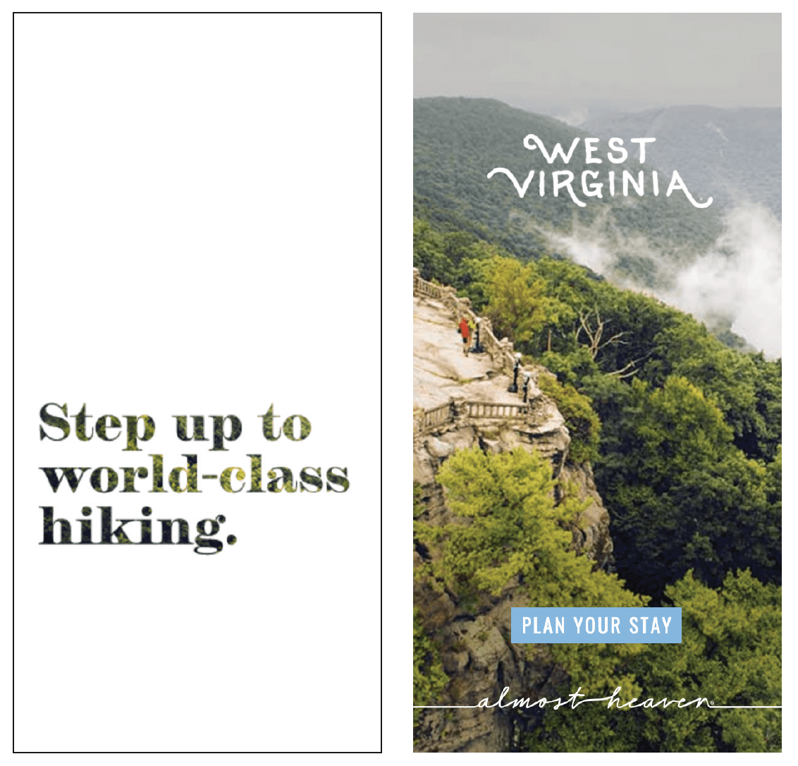 As human beings, we spend most of our lives searching for the people and places we feel a deep connection to. Where fitting in is effortless, and being our authentic self is celebrated. And when we finally find ourselves in the place we’ve been longing for, it’s as close to heaven as we can get. So why not make West Virginia the antidote for people’s most important cravings? West Virginia would build its product and brand on becoming the east coast’s premier mountain town destination where your personal longings are not only realized, but deeply fulfilled. The campaign is called Almost Heaven and it’s anchored by John Denver’s hit song, “Country Roads.”